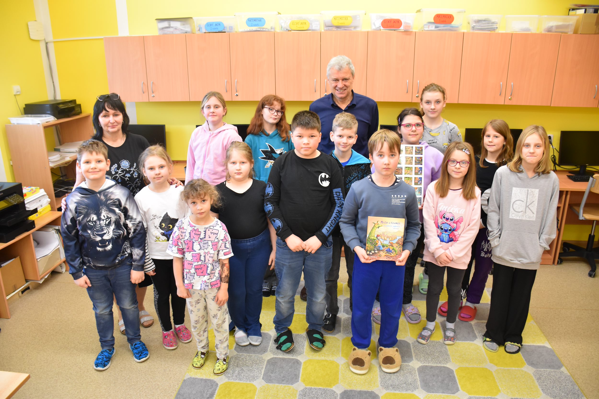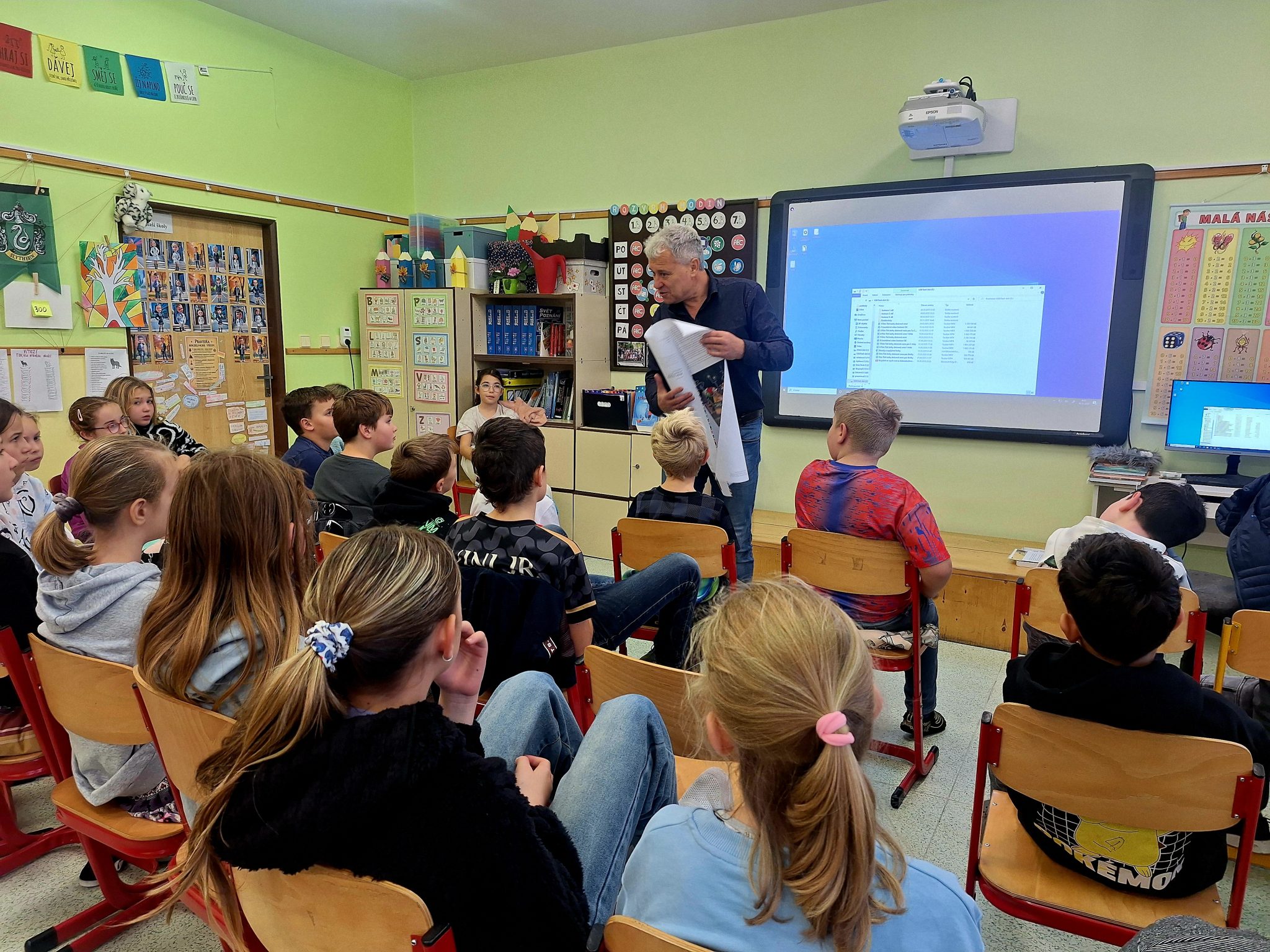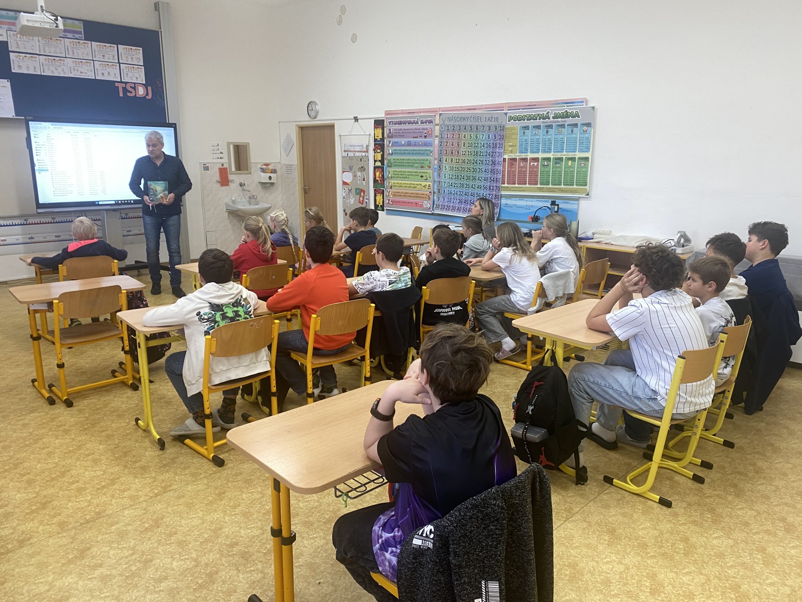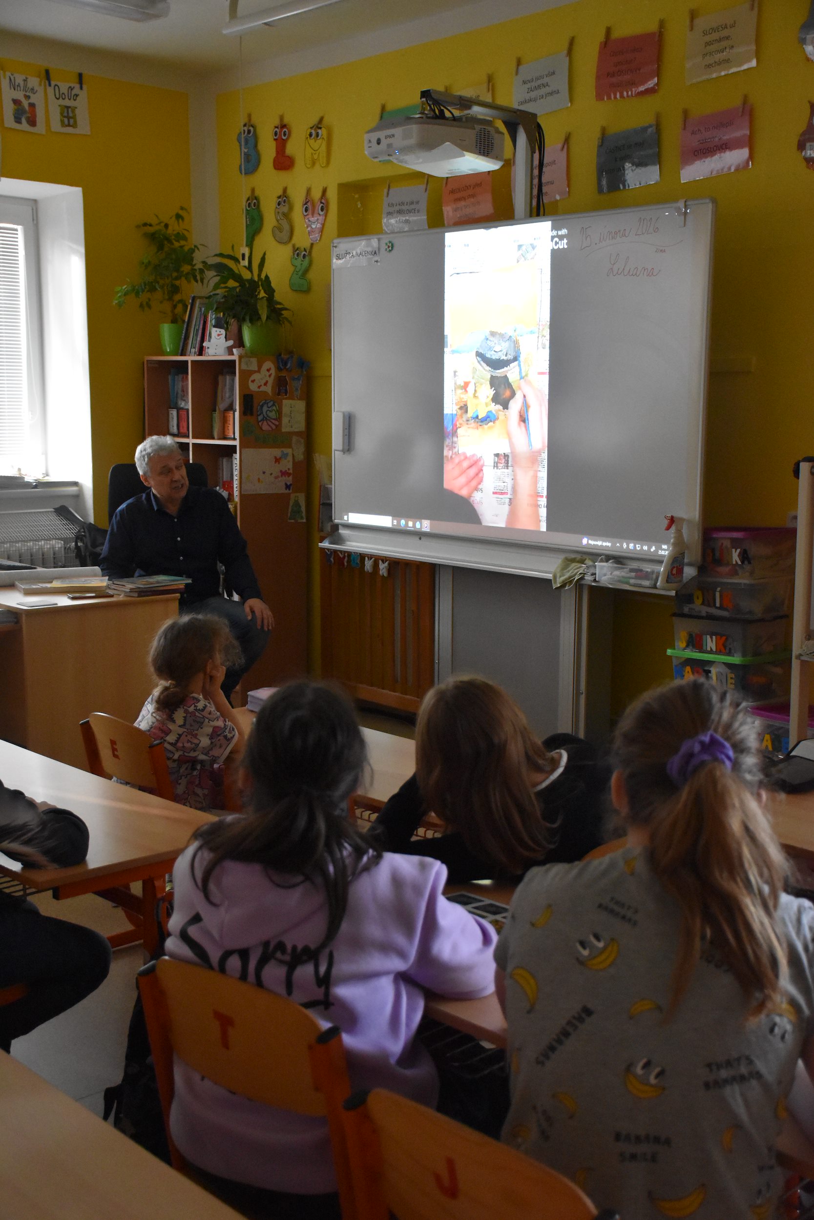 Ze stránek školy: Ve středu 25. 2. 2026 navštívil naši školu pan spisovatel Josef Beneš, autor dětských knížek, ve kterých Meďan a Koumen zažívají dobrodružné příběhy na různých planetách, kam se přemisťují díky teleportačnímu přístroji, který sestrojili. Pan Beneš dal dětem nahlédnout do světa vzniku nové knihy od psaní až po pulty knihkupectví. Děti mohly vidět, jak složitý proces to je, kolik práce se za každým výtiskem skrývá. Besedy pro školy pořádá tento autor pravidelně, proto má v zásobě i pěkně zpracované video, jak vzniká kniha, které děti zhlédly a které průběžně zastavoval a komentoval. Pro dětskou knížku jsou nezbytné ilustrace a k tomu účelu pan spisovatel Beneš dětem přivezl ukázat originály kreseb některých ilustrací.