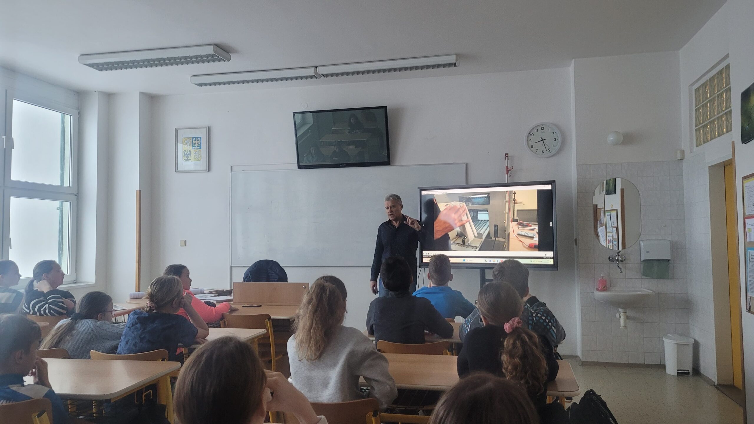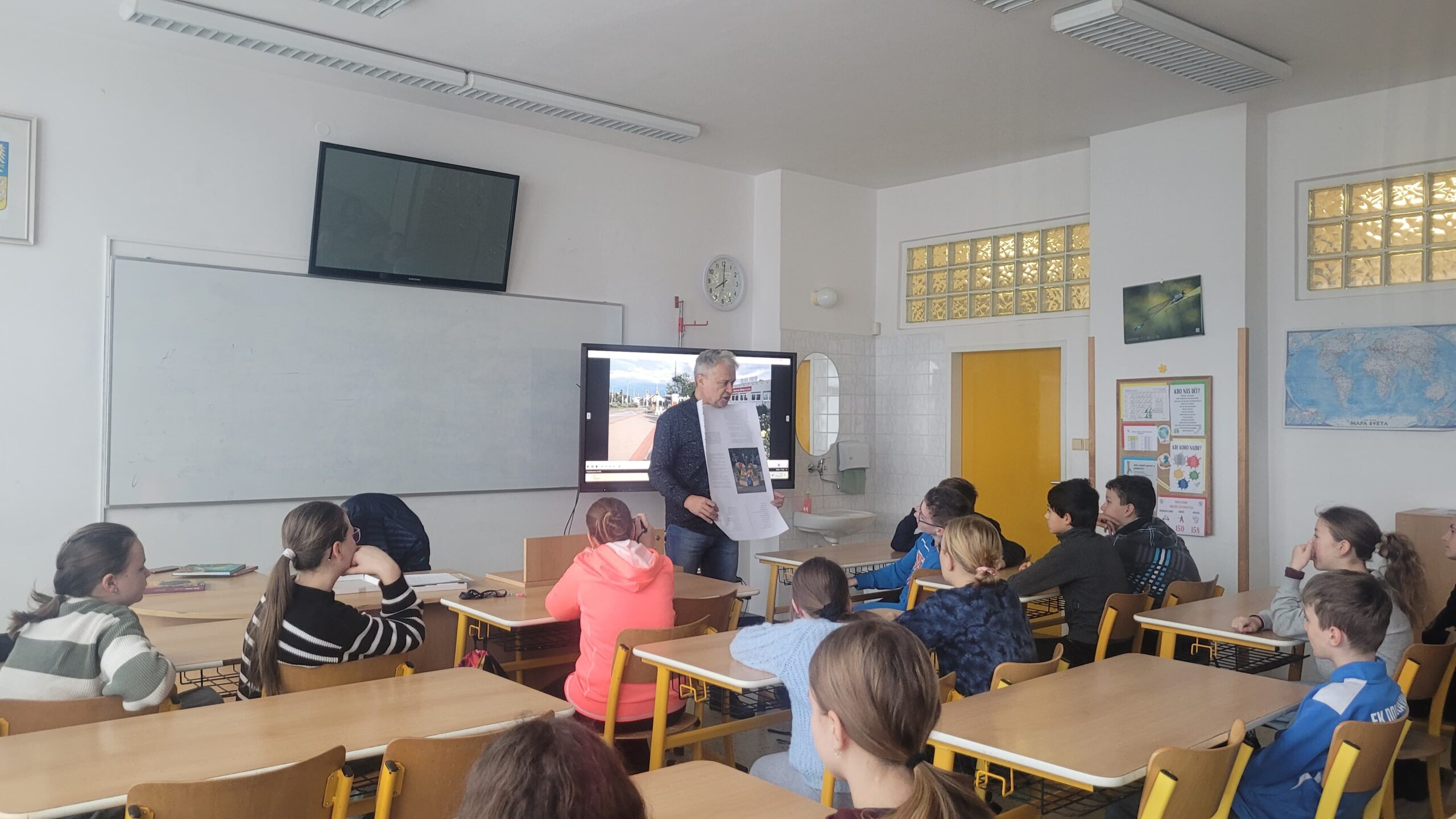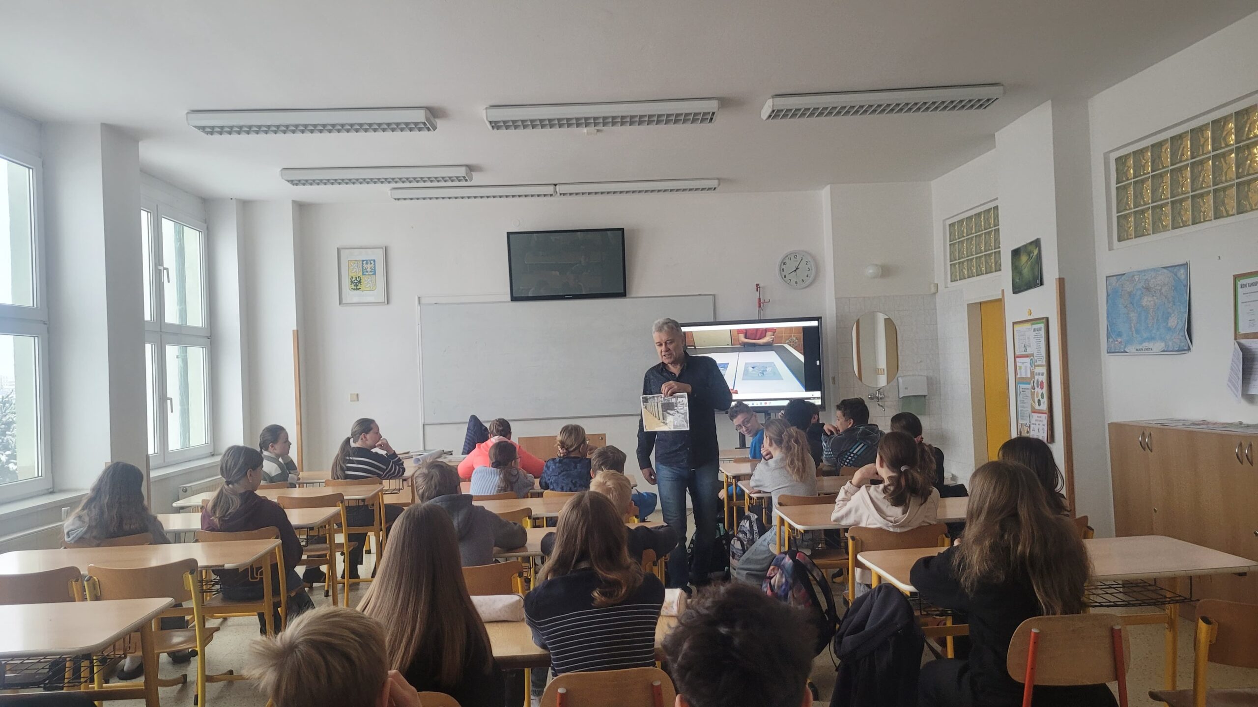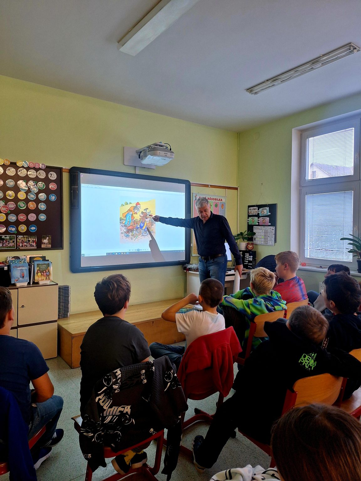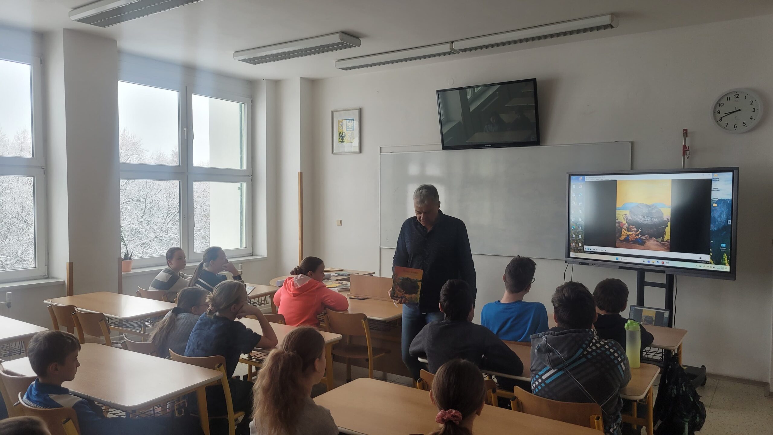 Ze stránek školy: Ve středu 25. 2. 2026 navštívil naši školu pan spisovatel Josef Beneš, autor dětských knížek, ve kterých Meďan a Koumen zažívají dobrodružné příběhy na různých planetách, kam se přemisťují díky teleportačnímu přístroji, který sestrojili. Pan Beneš dal dětem nahlédnout do světa vzniku nové knihy od psaní až po pulty knihkupectví. Děti mohly vidět, jak složitý proces to je, kolik práce se za každým výtiskem skrývá. Besedy pro školy pořádá tento autor pravidelně, proto má v zásobě i pěkně zpracované video, jak vzniká kniha, které děti zhlédly a které průběžně zastavoval a komentoval. Pro dětskou knížku jsou nezbytné ilustrace a k tomu účelu pan spisovatel Beneš dětem přivezl ukázat originály kreseb některých ilustrací.